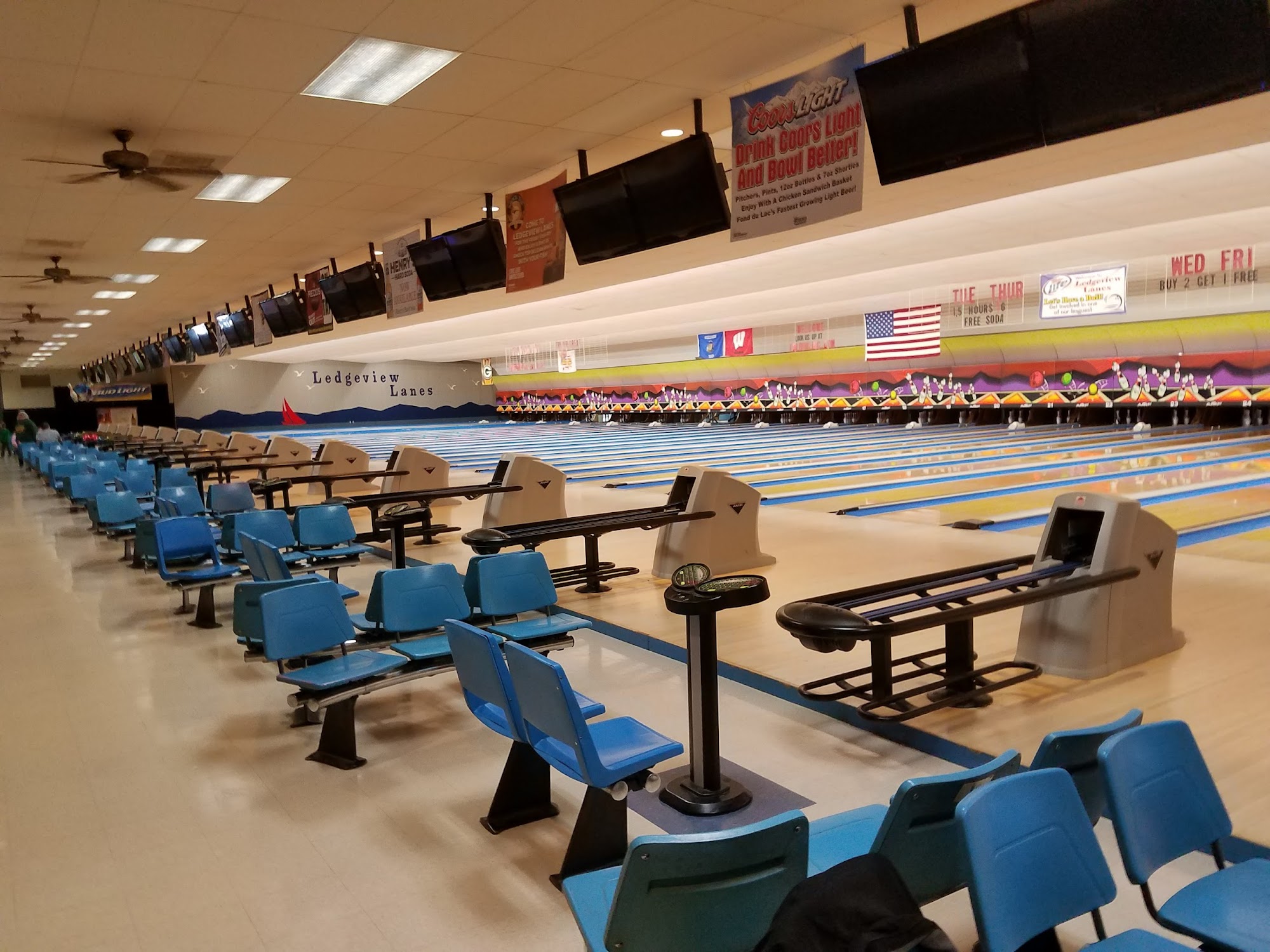 Ledgeview Lanes is a popular family-friendly bowling center in Fond du Lac, WI, offering 36 modern lanes that are well maintained and in great condition. It is a welcoming place for all, whether for casual outings, league play, or hosting parties and corporate events. The facility features a bar and grill with delicious food, including standout items like perch and steak sandwiches, along with refreshing drinks and friendly service from the bartenders. Visitors appreciate the clean environment, friendly staff, and the ability to create lasting memories with friends, family, or colleagues. The venue is suitable for various occasions, from regular bowling nights to special events, with staff providing helpful and accommodating support. Although prices for bowling sessions have increased, the overall experience remains enjoyable, making it a favored spot for community fun and entertainment in Fond du Lac.