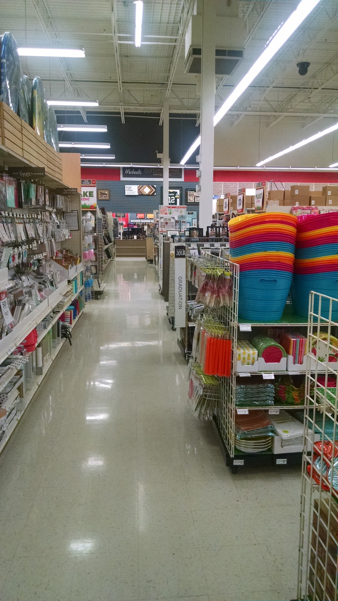 Michaels is a great place with a good selection of material and merchandise, offering creative inspiration. It provides expansive craft assortments, popular art supplies, fabric, seasonal items, frames, and party decorations. Customers can find many seasonal items, clearance goods, and quality t-shirts. Some note prices can be a little high even during a sale, advising to check comparable prices. While generally well-appreciated for service like accommodating online pickups, some wish for a better variety of specific storage options and more niche items like cases for hockey pucks, preferring not to order online.
