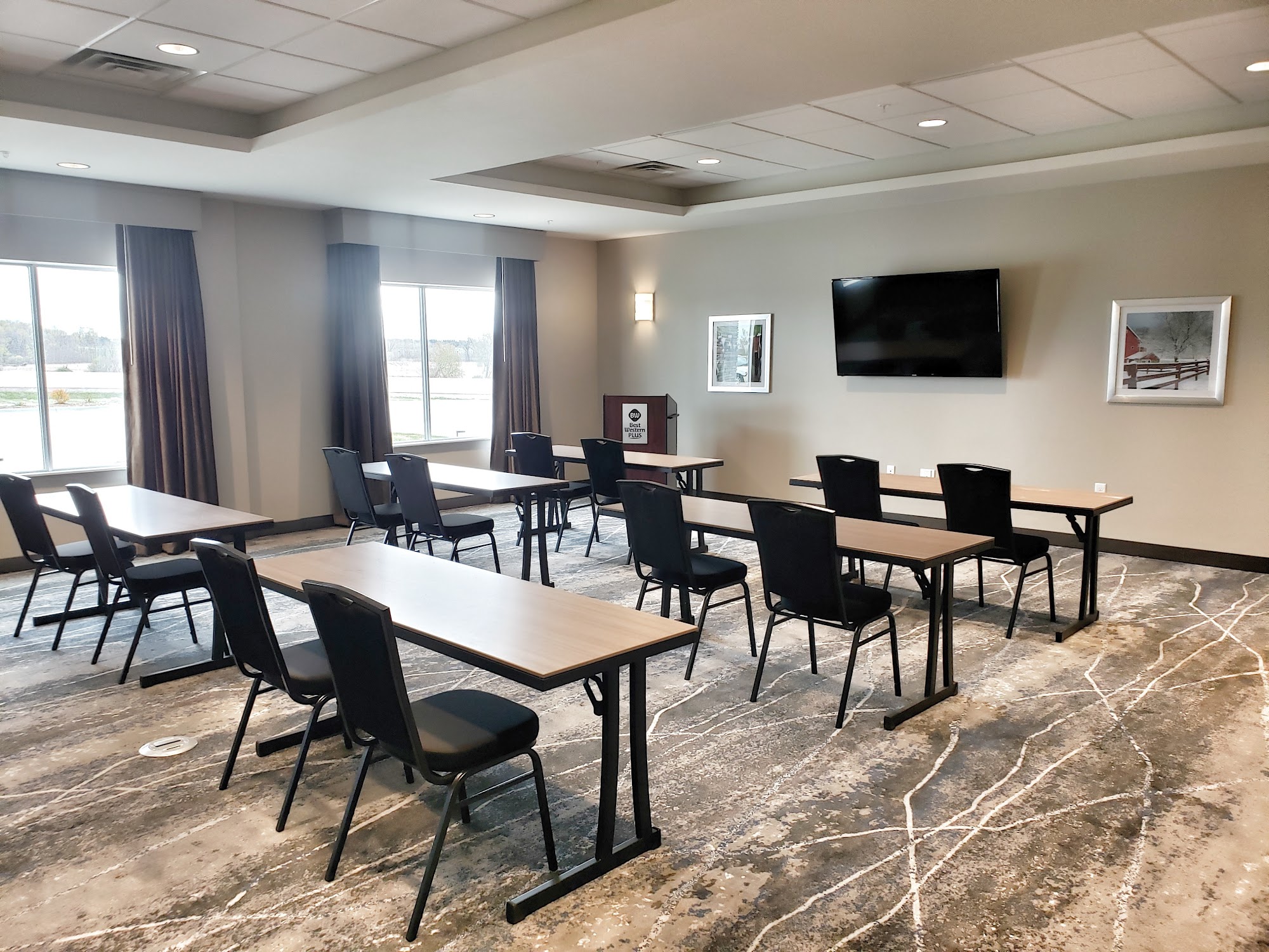 Best Western Plus Jefferson in Wisconsin is a clean, quiet, and well-maintained hotel that consistently receives high praise from guests. The hotel offers comfortable rooms with options including two queen beds, two king beds, and suites, all equipped with a coffee maker, microwave, and mini fridge. Guests appreciate the friendly and helpful staff, who provide excellent service during check-in and stay. The hotel features a bright, inviting breakfast area serving a complimentary hot breakfast with fresh fruit, breakfast burritos, biscuits and gravy, and other options, all served with real plates and silverware, adding a special touch. Additional amenities include an indoor swimming pool, gym, guest laundry, meeting room, and grab-and-go snacks. Its location is convenient, situated in a quiet area near a gas station and fast food restaurant, just minutes from Jefferson's shopping, dining, kayaking, and events. Whether for an overnight stay or an extended visit, guests find this hotel to be a reliable and comfortable choice.