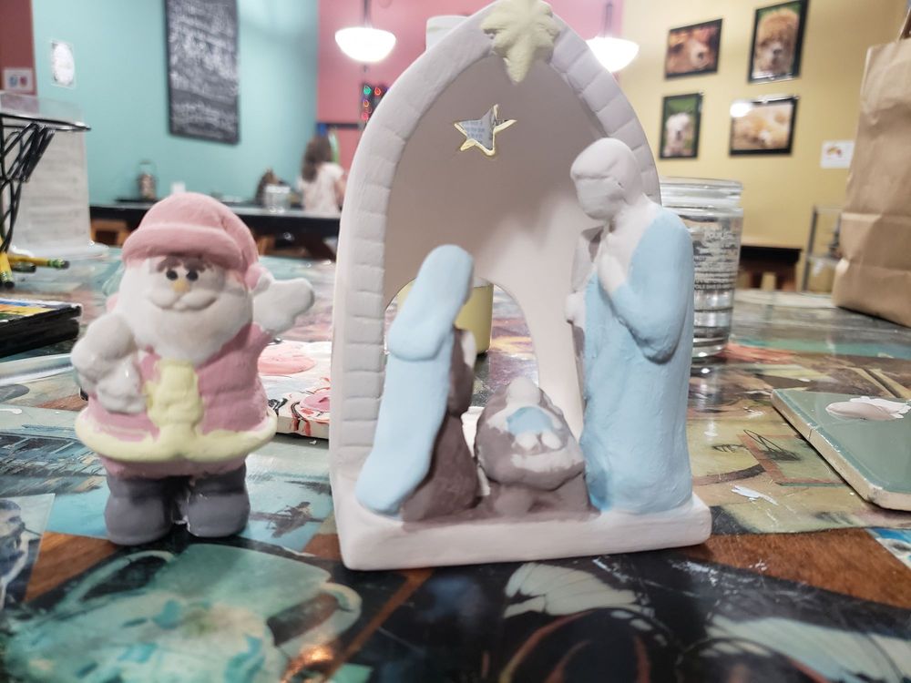 Alpaca Art is a paint-your-own pottery studio, a fun activity for all ages. This wonderful and great place has a very chill vibe. It is a beautiful local shop where you can create personalized gifts or just have fun. The staff are very kind, helpful, super nice, and friendly. They will point you in the right direction with any questions. There is a decent selection and a lot of items to paint at fair prices, with plenty of space to sit. You are welcome to sit and take your time. There is a separate area for parties, groups, or overflow. The website is easy to navigate. They offer beverages and snacks for purchase. It is an awesome experience for a date, with friends, or to take the kids. Many customers plan on continuing to go and will definitely be back.