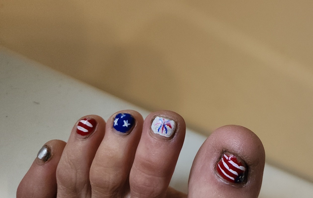This place is so calming and relaxing. Their pedicures are amazing, and this picture took weeks after my nails were done for the 4th of July. They looked a lot better when 1st done.
