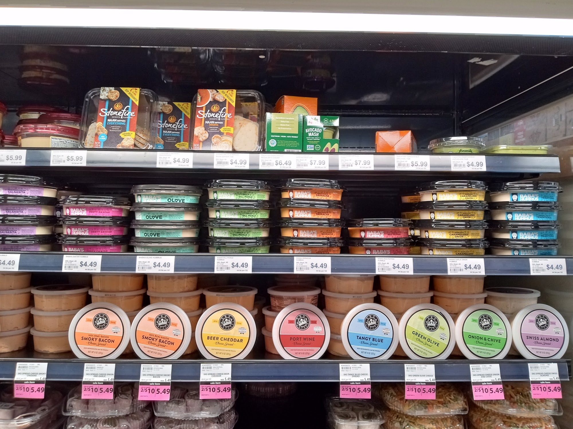 Large counters of fresh prepared or partially prepared food. Roomy, decent prices, excellent customer service