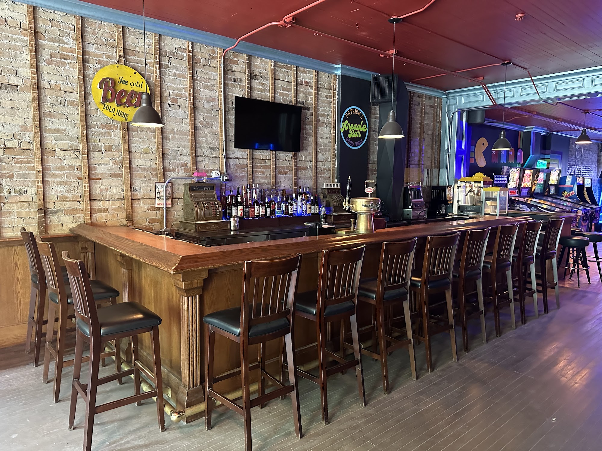 Patrick's Arcade Bar is a timeless arcade bar featuring all your favorite retro video games along with the best hand-crafted cocktails and a small menu of classic arcade snacks. Patrick's offers a fun, nostalgic atmosphere in a light-hearted, casual bar setting. Patrick's Arcade Bar is conveniently located on Main Street in downtown Lake Mills, WI. Always good vibes at Patrick's Arcade Bar! The reviews praise the bar's friendly owner, cool offers like free drinks if you finish a bottle, nice interior, great games, nice patio, and good drinks. The bar is said to have a fantastic assortment of classic arcade games, making it a one-of-a-kind experience. The owner is described as welcoming, accommodating, and caring. The bar is also noted for its family-friendly environment, with some reviewers bringing their children to play. Overall, Patrick's Arcade Bar is described as a great addition to the town, worth a visit for anyone in the area.