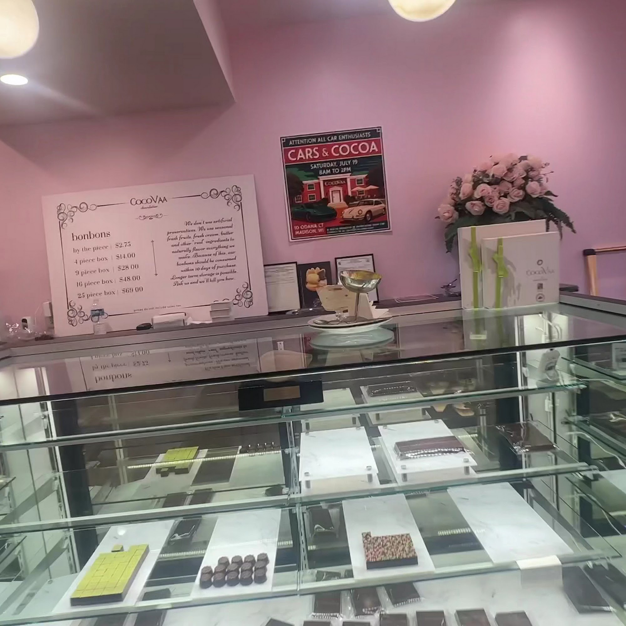 CocoVaa Chocolatier is an award-winning artisan chocolate shop located in Madison, Wisconsin. Known for its small-batch bonbons, barks, and other chocolates, it has gained international recognition from the Academy of Chocolate and as a James Beard Award semi-finalist. The shop offers handcrafted chocolates with globally inspired flavors, crafted with exceptional quality and care. The ambiance is elegant, inviting, and designed to make visitors want to linger, making it a perfect spot for treating oneself, a date, or a girls’ outing. The owner, a talented and creative woman, built and designed the space herself, adding a personal touch to the welcoming atmosphere. Customers praise CocoVaa for its beautifully presented chocolates, innovative flavors, and the passion that goes into each piece. Many mention the warm and knowledgeable staff who provide outstanding customer service. Beyond the chocolates, visitors often share memorable experiences with the friendly family behind the business, making each visit special. Whether shopping for gifts or enjoying a luxurious treat, CocoVaa is considered one of the best chocolatiers in Madison, offering a unique and delightful experience that keeps customers coming back regularly.