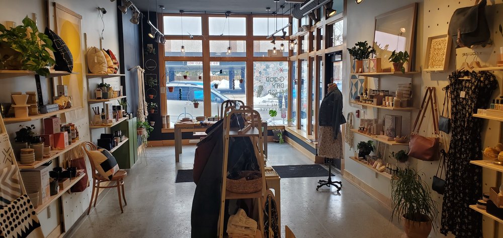 Good Day Shop is a cute little shop in a quiet neighborhood on Monroe street. It is a warm and inviting place filled with tastefully curated, interesting items for personal use and gifting. The selection includes unique and well made home and kitchen goods, candles, bags, jewelry, and both adult and baby items. Everything is of high quality and aesthetic, featuring a minimalistic, dainty style with many statement pieces. The shop is excellent for finding the perfect gift, and they also offer thoughtful gift boxes for all occasions, both in-store and online. The staff are pleasant, helpful, and sweet. Prices are reasonable. While the selection is a bit narrow, it is definitely worth a stop to explore. Parking can be rough, but street parking or nearby residential streets are options. It is a great little shop to explore.