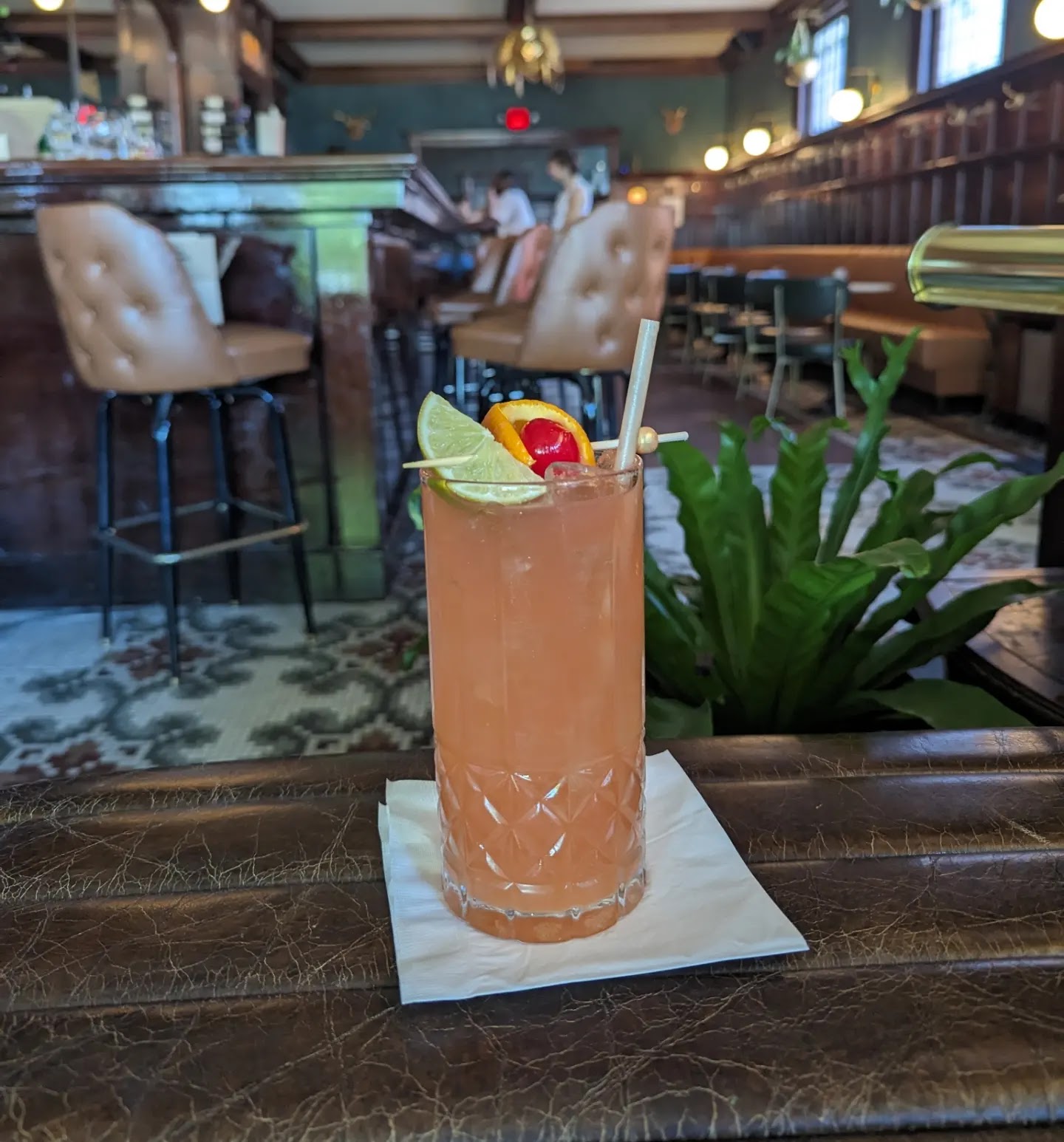 Came here on a Friday night. It was pretty busy and had a friendly atmosphere. Drinks were good. Priced average. Bartenders were friendly and attentive. Definitely will be back! Parking wasn't too bad.