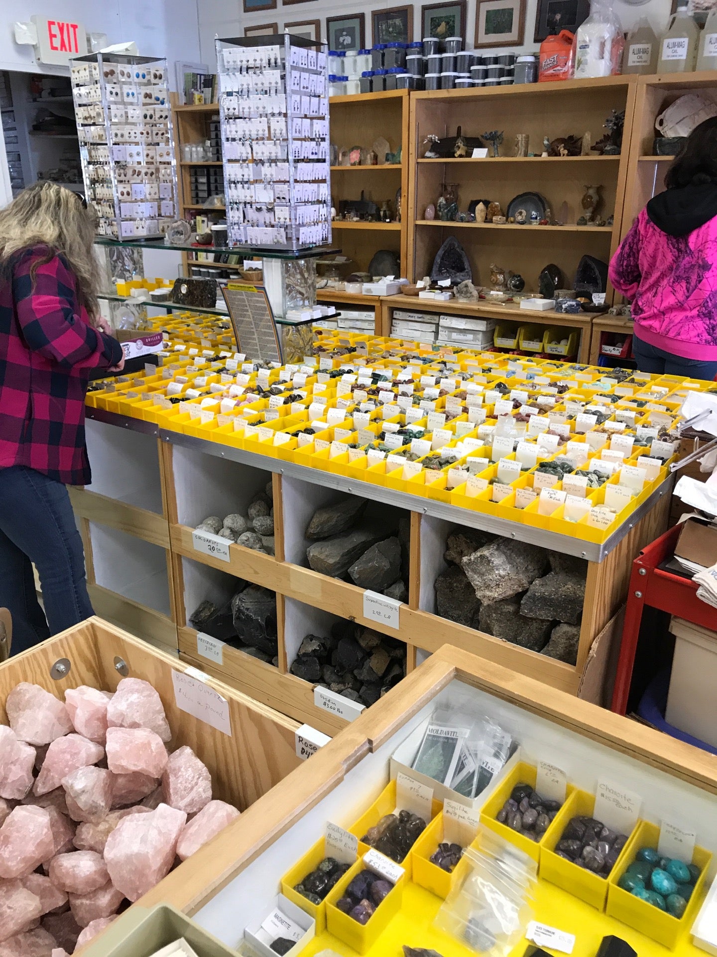 There are lots of amazing stones and rocks . Large pieces of certain types of rocks. Prices between $1 to $500+. A lot of cut and decorative items.