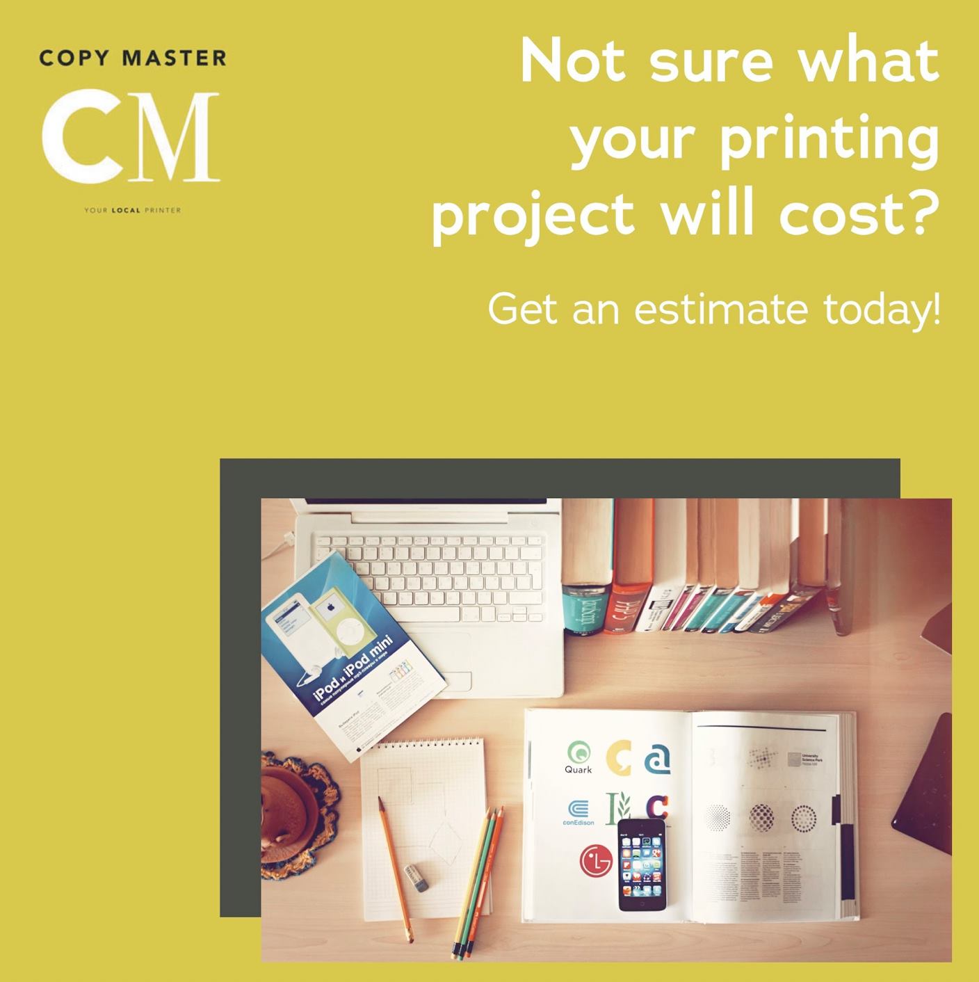 Copy Master is Mequon's leading full-service printing company since 1984. We specialize in fast quality printing, graphic design, exceptional customer service and competitive pricing. No matter the type or quantity of printed materials you need, our dedicated team is here to get you up and running quickly. We are a local printing company that prides itself on developing long-term relationships with our customers. Booklets, brochures, envelopes, business cards, calendars, catalogs, invitations, copies, letterhead, and more.