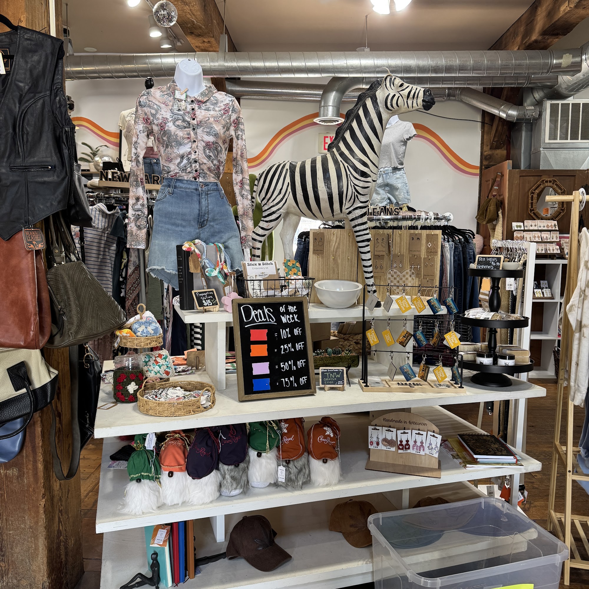 Sunny + Olive Co. is a size- and gender-inclusive secondhand consignment shop located just 10 minutes north of Janesville and 35 minutes southeast of Madison, Wisconsin. This charming store offers a wide variety of clothing, bags, accessories, and books, while also supporting local small businesses. Customers appreciate the easy and streamlined consigning process, with options to receive earnings as store credit or via Venmo. The prices are reasonable, and shoppers often leave with treasures they can't resist. The welcoming and friendly staff enhance the shopping experience, ensuring customers feel supported and valued. The store is clean, organized, and aesthetically pleasing, featuring a diverse selection of items, including unique finds upstairs. Color-coded sales add to the enjoyable shopping experience. Sunny + Olive Co. is not just a thrift store; it is a beloved local gem that combines great merchandise with a positive atmosphere, making it a must-visit destination for both shoppers and consigners alike.