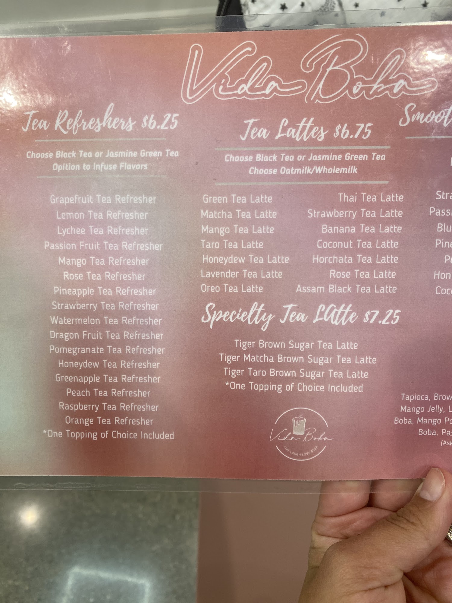 Staff was really friendly, quick service, and drinks came out amazing. I ordered 9 different drinks for my friends and I and they all came out amazing. Right touch of sweet, good texture, and visually appealing. 100% getting added to the rotation for refreshing drinks for my work crew.