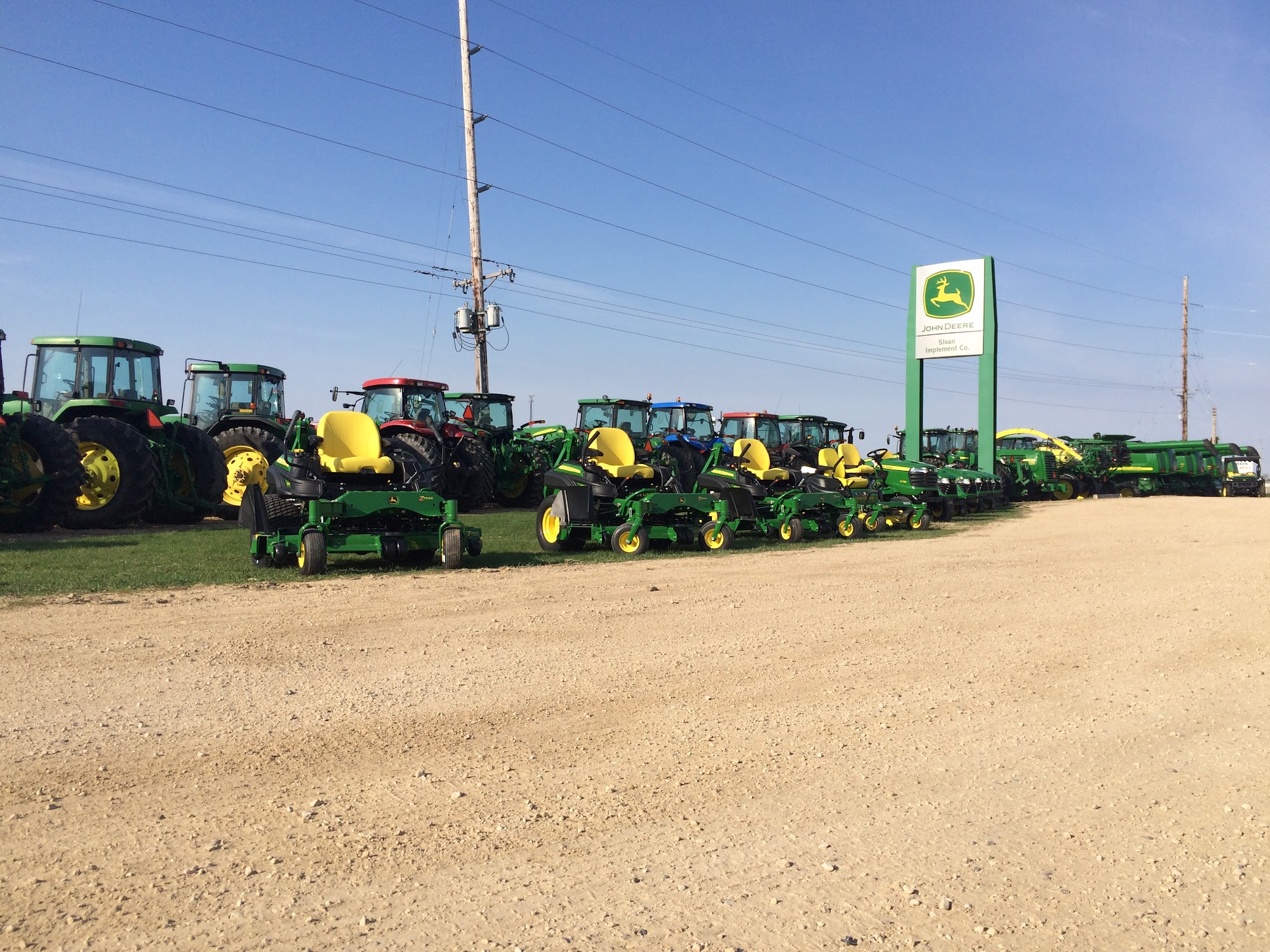Sloane Implement is the local John Deere dealership located in Montfort. They have many John Deere tractors and implements in stock as well as John Deere parts. I dropped a lawn tractor off for service and installation of a snow blower implement which should be completed in less than a week.