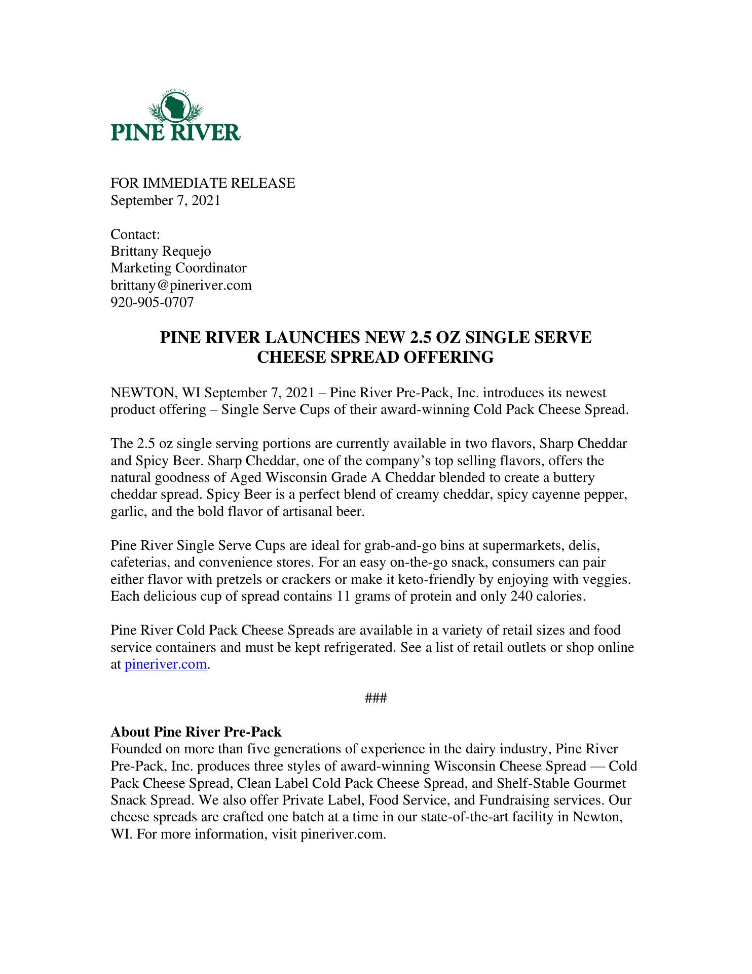Pine River Pre-Pack Inc., located in the Wisconsin countryside, has been producing award-winning cheese spreads and confections since 1963. Their products are highly praised for their delicious taste and variety, with favorites including spicy beer, bacon flavor, and Ghost pepper cheese spreads. Customers often enjoy these spreads as quick and easy appetizers, often topped with salami slices and served with crackers. The company’s cheese spreads are available in stores across different states, and some customers even order directly from them to access all their flavors. The business is also appreciated for its friendly and helpful customer service, with prompt responses and personal attention that enhance the buying experience. Overall, Pine River Pre-Pack Inc. is known for its quality products, excellent service, and long-standing reputation in the cheese spread industry.