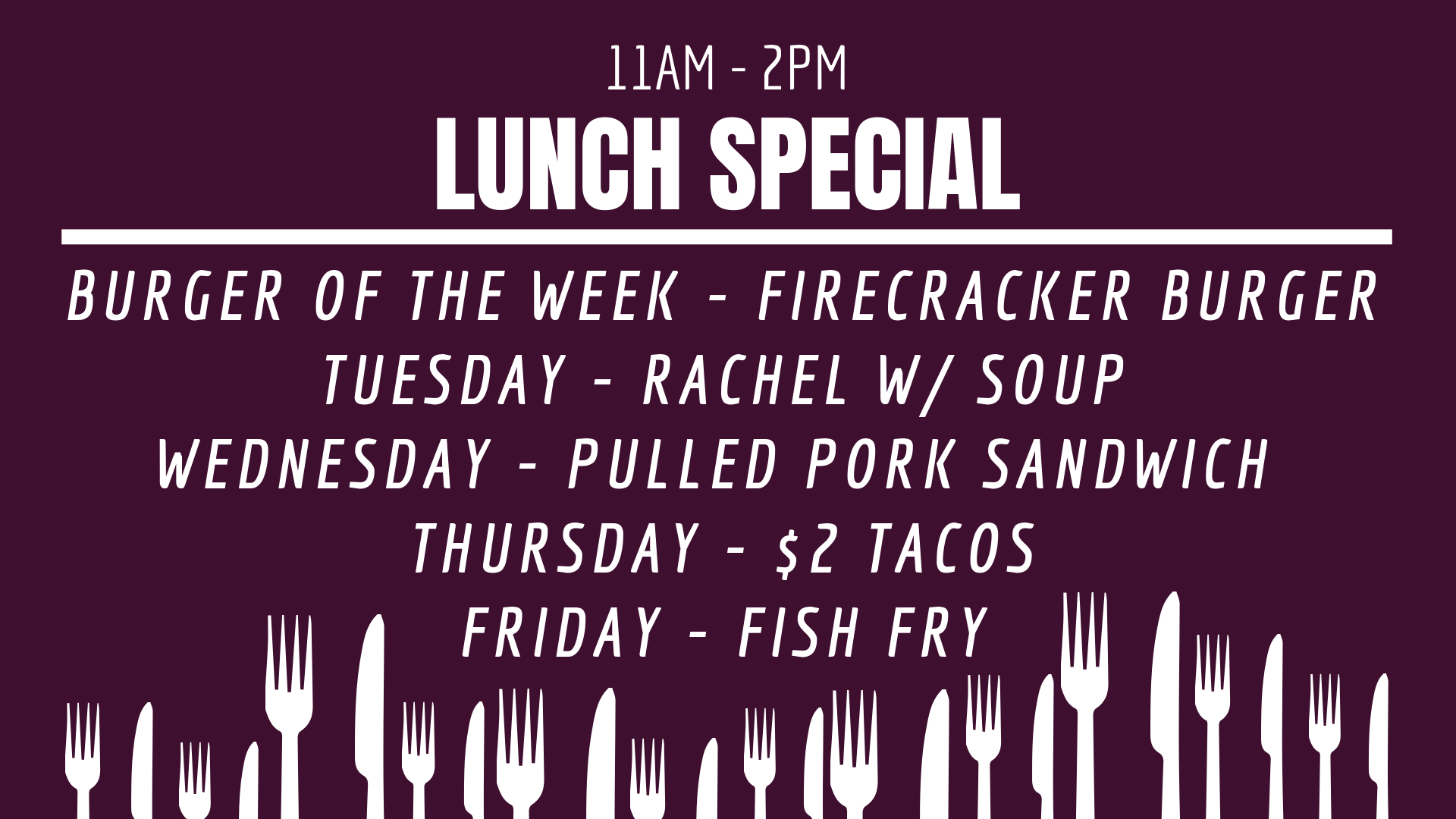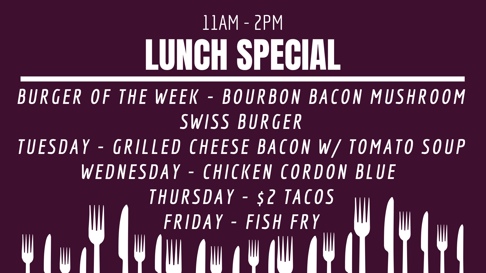 Great hall for parties. Have one of the very few local dance floors. (Huge) Great friendly staff to serve you drinks and food. Also lunch Monday through Friday 11am till 2pm.