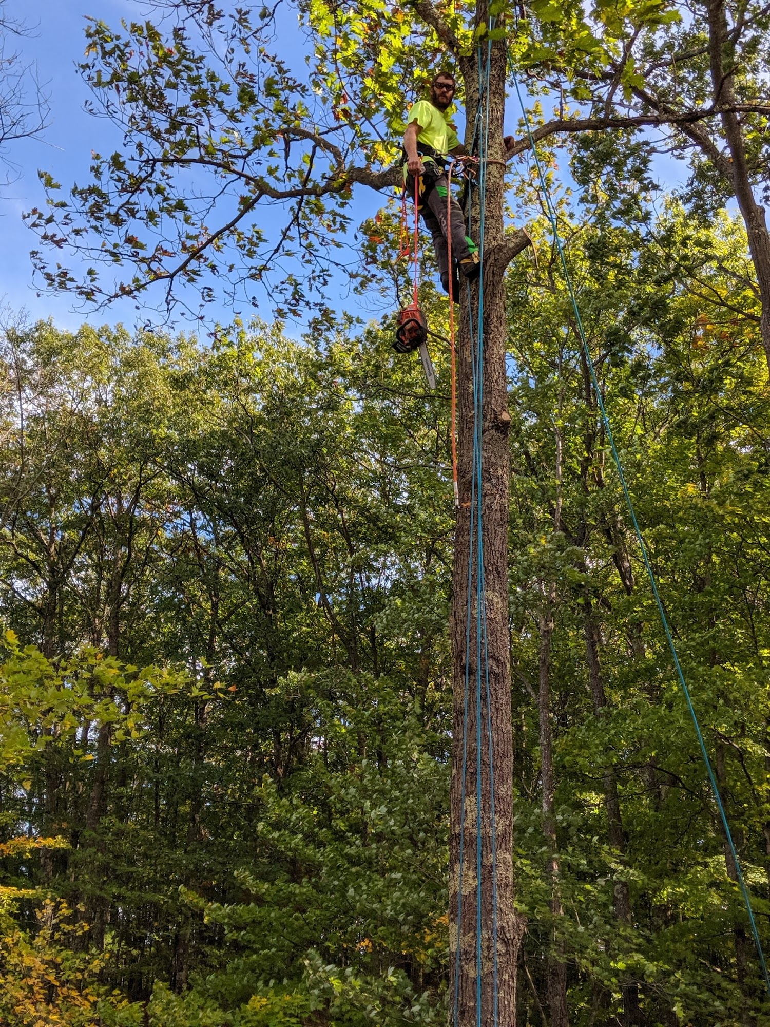 They took down 9 very large trees and cleaned up after each downing. They are professional and work together very well as a team. Everyone does their job ...they were on time...and we really appreciate that those trees are gone. Thank you.Service: Tree removal
