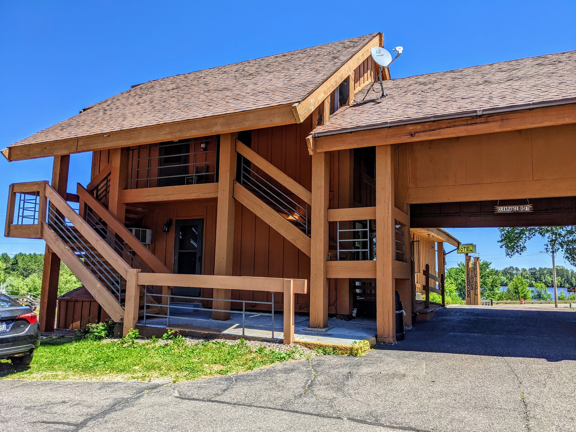 The rooms are clean but older kinda what you'd expect up north and you have a patio. They have breakfast daily, the owner is super cool guy!