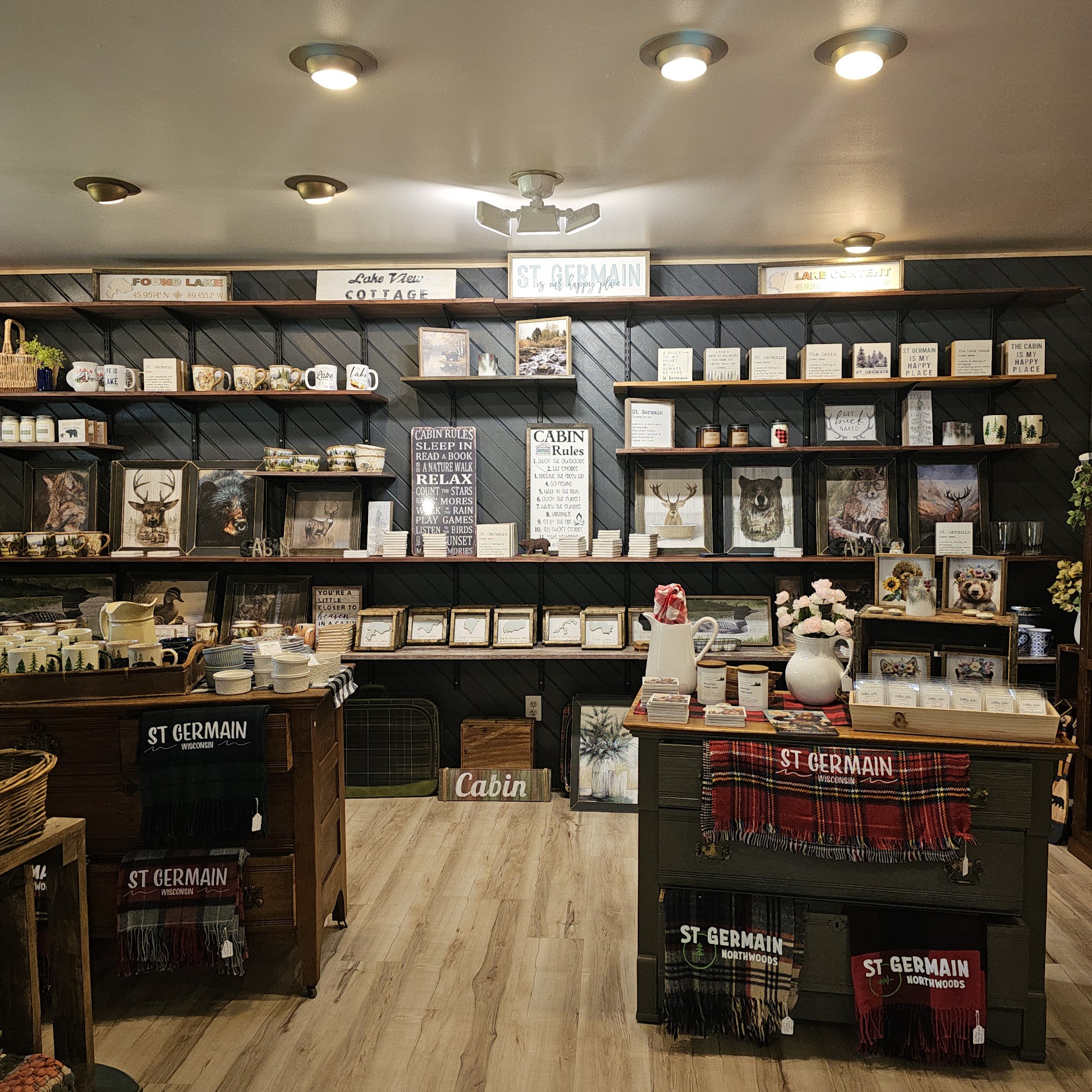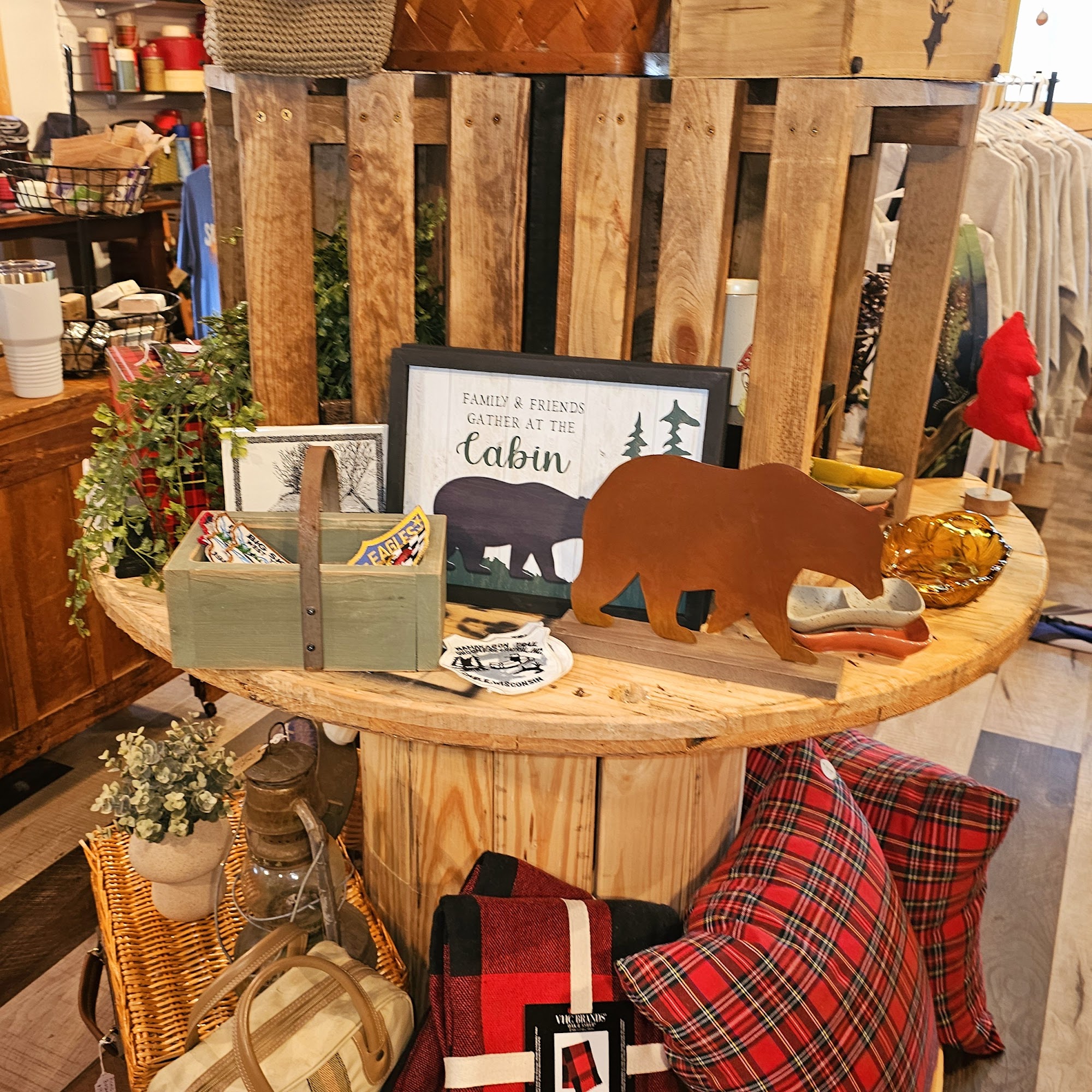The Plaid Bear is a very nice shop and boutique in St. Germain. It is a great place to shop for unique Northwoods items, 'up north' gift items, and clothing, including cozy sweatshirts, hoodies, cute apparel, and adorable goodies. The store offers great customer service and is a must-stop when in the area. The shop owners are very nice, welcoming, friendly, funny, and helpful. They provide outstanding service, making customers feel super special and never rushed. The shop features fun little nicknacks, decor, prints, and wall hangings, with many items made in the USA. It is a regular stop for many, who highly recommend it for its excellent selection and wonderful, welcoming atmosphere.