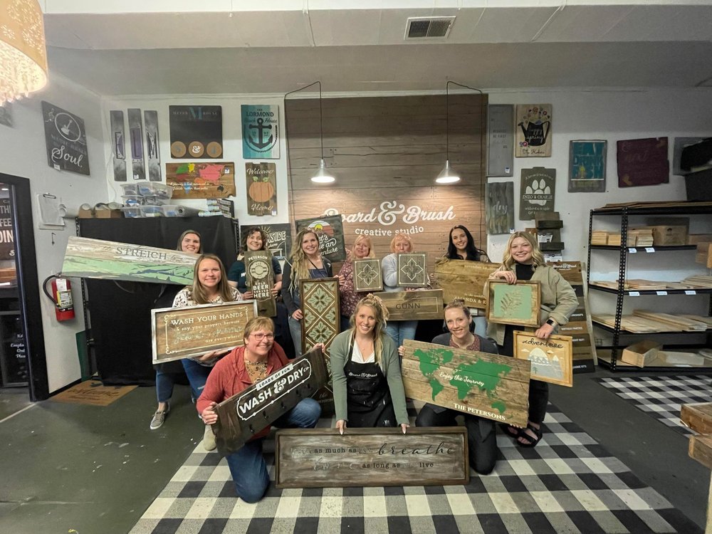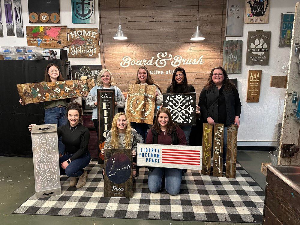 Are you looking for a night out with friends? Is your inner DIY itching for a fun new project without having to buy all your own supplies and make a mess at your house? Then BOOK A WORKSHOP at Board & Brush Creative Studio in Sheboygan. Sheboygan is a small town on the west shore of Lake Michigan. It is located between Milwaukee and Green Bay. It is a great place to enjoy the benefits of Lake Michigan with plenty of water sports including surfing, sailing, kayaking fishing and more! Kohler kitchen & bath as well as The American Club is not a far drive away. The area is known for some great golf courses including Whistling Straights . Sheboygan is known as the Bratwurst Capital of the World and for their amazing brat fry’s