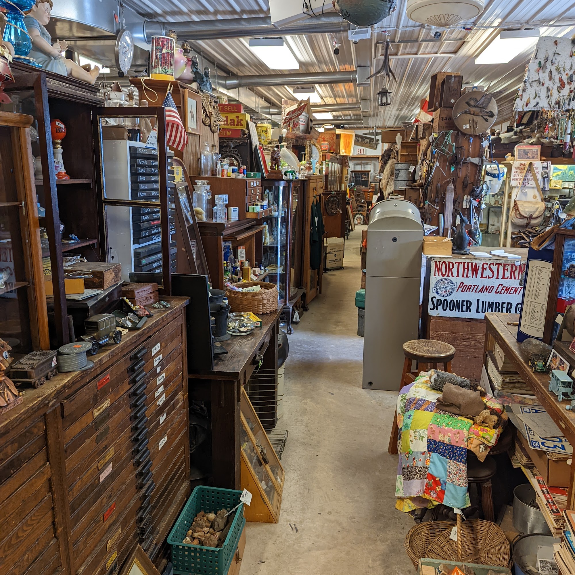 Poor Richard's Antiques is a family-owned business located in Spooner, WI, with four buildings packed full of hidden treasures. The store is continually adding new inventory, and customers can talk to the experts on antiques and collectibles to find exactly what they are looking for, or something they didn't even know they needed. Customers are encouraged to bargain with the owner, who is described as a "wheeler dealer." Shoppers can try to negotiate at least a 20% discount by starting with a low-ball offer and working their way up. The owner has been praised for being fair, with prices rarely being overpriced, and for providing great deals at times. The store is known for its vast selection of antiques and vintage items, from furniture to jewelry and everything in between. It's an especially great place to find items for cabin decor, with a variety of rustic and woodsy items available. Customers have described the store as unorganized, but the owner is always willing to help locate specific items. Overall, Poor Richard's Antiques is a must-visit destination for anyone interested in antiques and unique shopping experiences. The knowledgeable and passionate staff, along with the impressive selection of items, make this store a great place to explore and find hidden treasures.