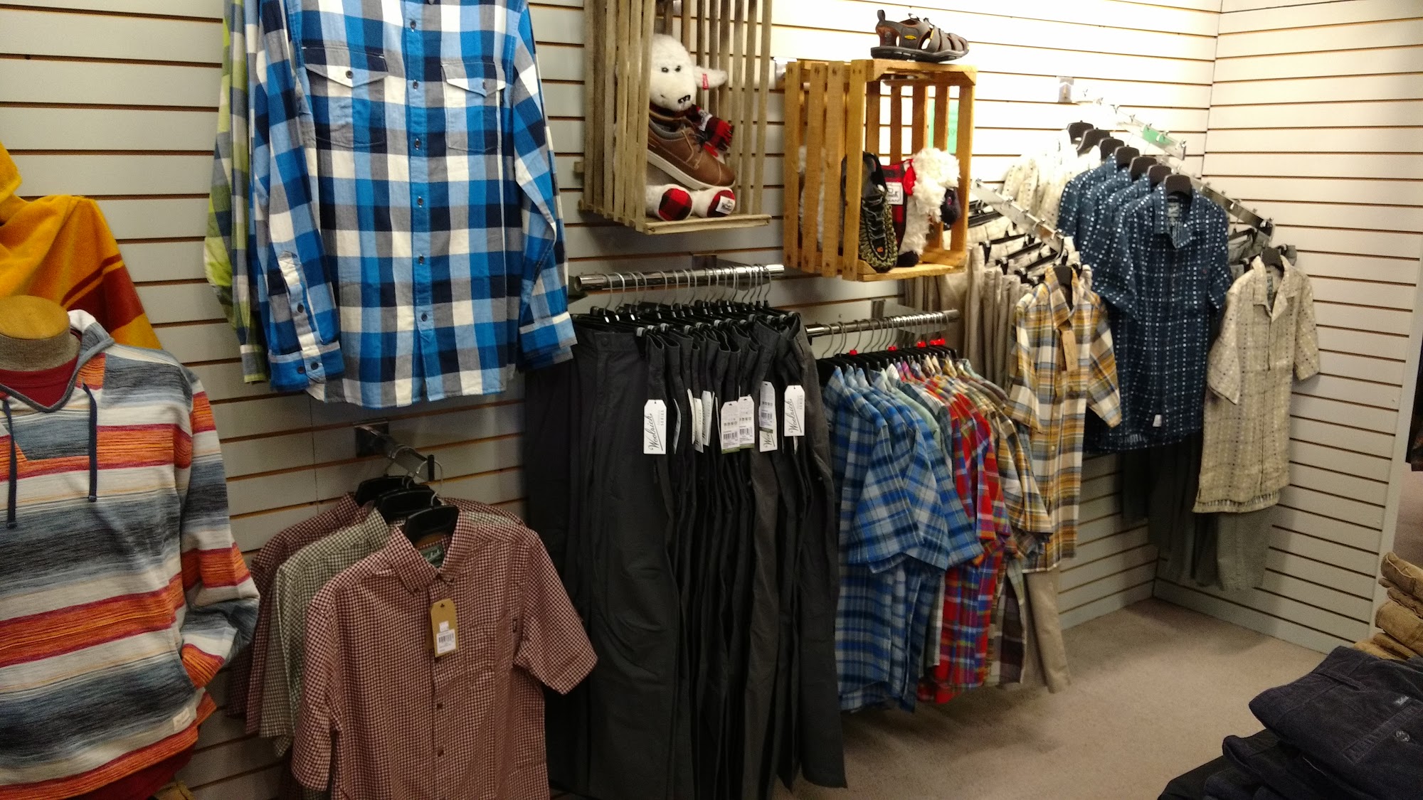 We carry Tasc bamboo performance wear for men, Tribal sportswear and denim for ladies, Pendleton sportswear, Stormy Kromer, Bagallini to hold all your important things and much more. Oh, yes, we rent suits and tuxedos for your special occasions. See you soon!