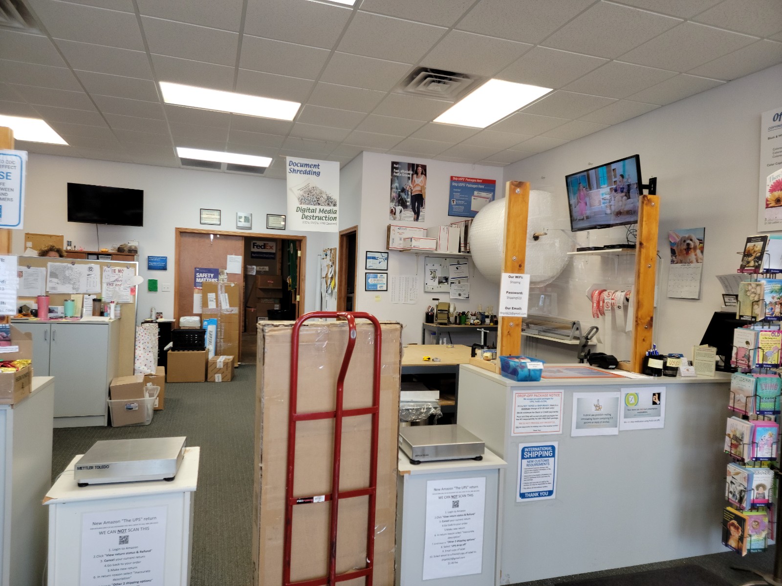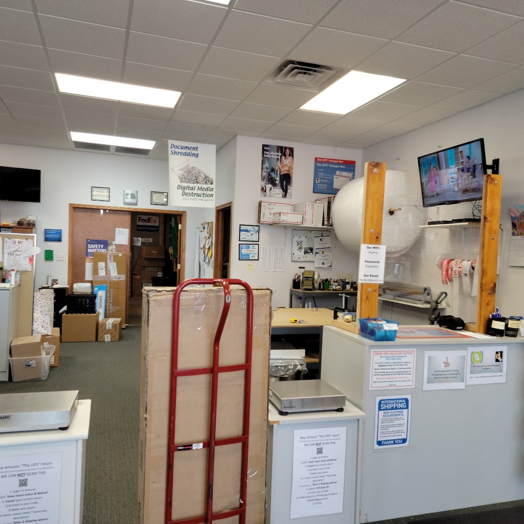 A local shipping service store that has many different shipping services they work with and also offer shipping supplies
