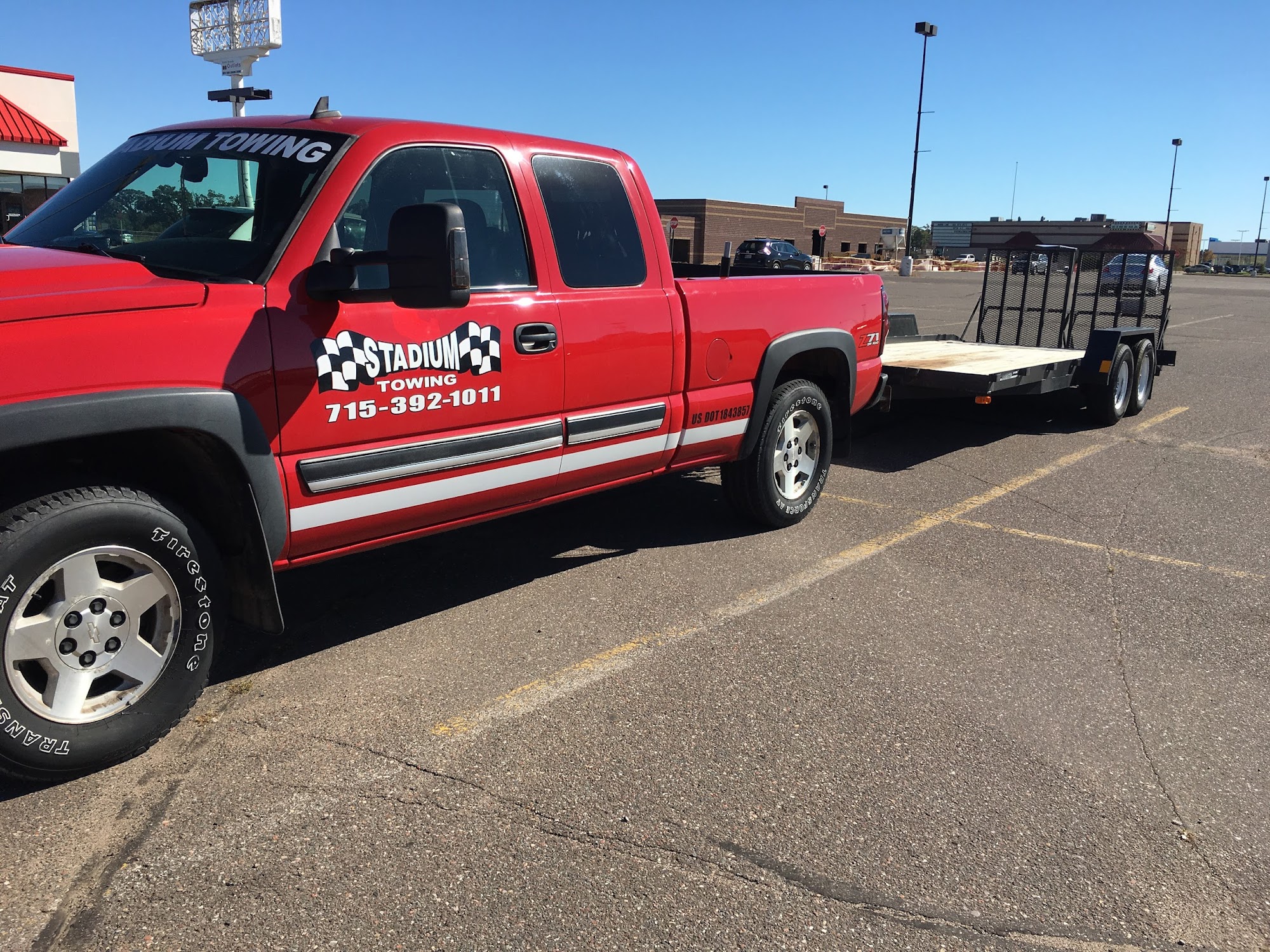 We had a flat tire 60 miles from home. Fortunately in a parking lot. We did not know who to call. I found Stadium on the Internet. The two young men arrived sooner than promised and had the tire changed in about 15 minutes. They were friendly and worked well together. We were very pleased with the service. THANK YOU.