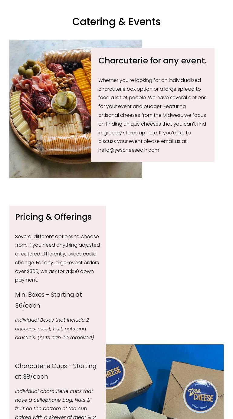 We had a charcuterie board made for a wedding and Yes Cheese did such an amazing job! Would highly recommend!