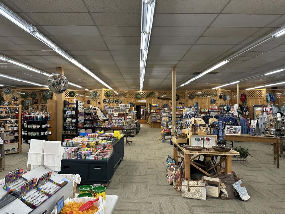 Nice big shop with all kinds of things to peruse. For us tourists, there's a lot of Tomahawk gear. Good selection, too.