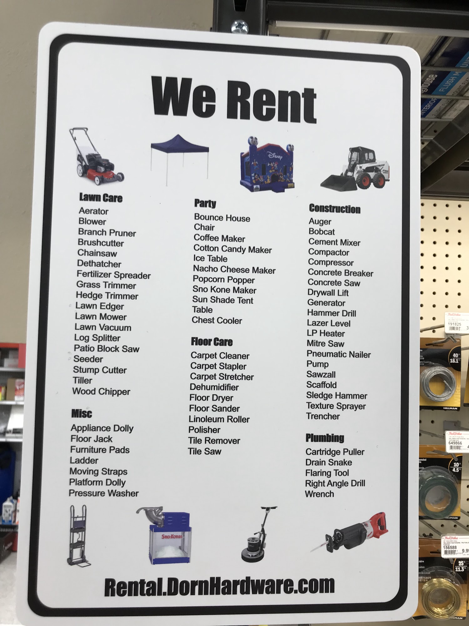 Dorn Ace Hardware and Rental is a family-owned chain of 4 stores in Dane County, Wisconsin, serving the entire community. They offer a wide range of equipment and supplies, from the "Monday-Friday Contractor" to the "Saturday Homeowner" and the "All Weekend Partier!" Customers are impressed by the store's extensive selection, quality equipment, maintenance, and convenient hours. The stores have specialized departments, such as "Rental" tools and party supplies or an "Outdoor Pro Shop" with fishing and hunting supplies. They are dominant in Hardware, Paint, Plumbing, and Tools, with additional departments for Lawn and Garden, Electrical, Housewares, and Automotive. Customers praise the excellent customer service, with knowledgeable staff providing helpful advice and assistance, even going the extra mile to solve problems. Whether it's a first-time visit or a regular stop, Dorn Ace Hardware and Rental is known as a reliable and friendly local hardware store.