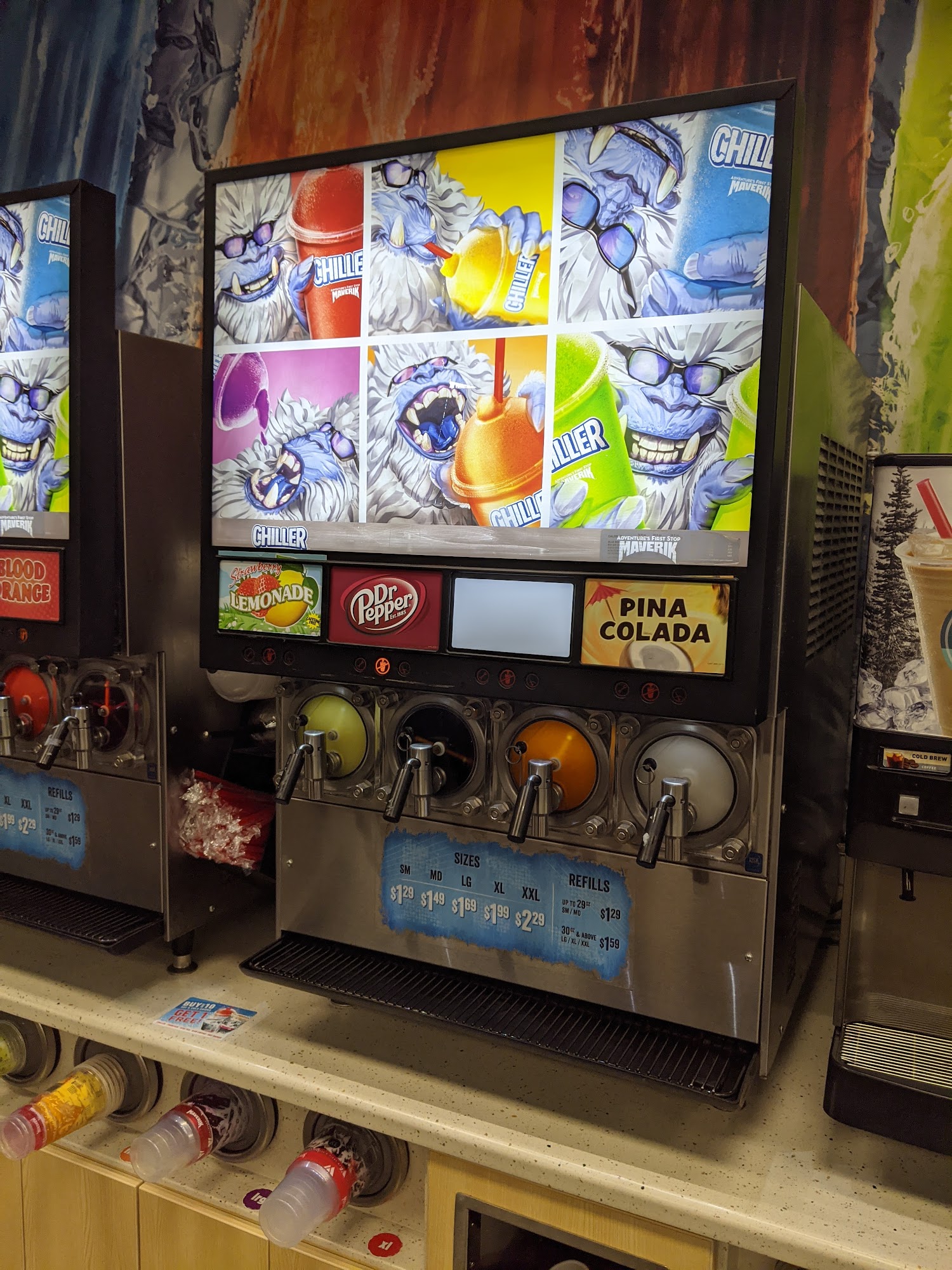 Maverik Adventure's First Stop is a clean and very nice gas station, well-stocked with better than average food and goodies. It offers fresh-made BonFire food, favorite beverages, and treats like pizza slices and burritos, with staff noted as friendly, amazing, and going above and beyond to help customers. However, some find the hot honey pizza slice greasy and not recommended. A common criticism is the long lines at checkout, with too few cashiers and self-checkouts that often go unused. The fuel pricing club structure is also cited negatively. Despite this, it remains a favorite stop for many, with staff praised for ensuring customer safety and accommodating specific needs.