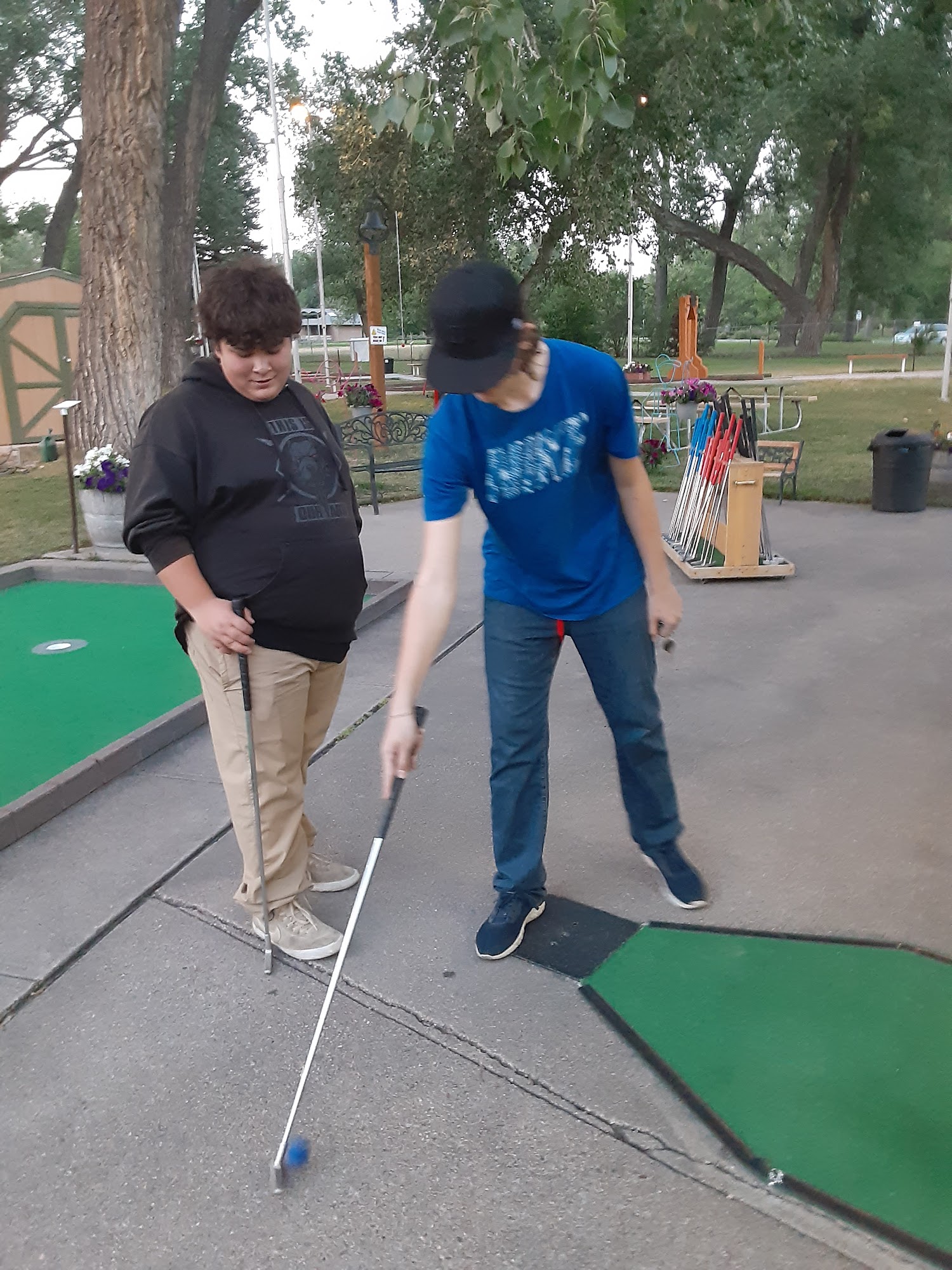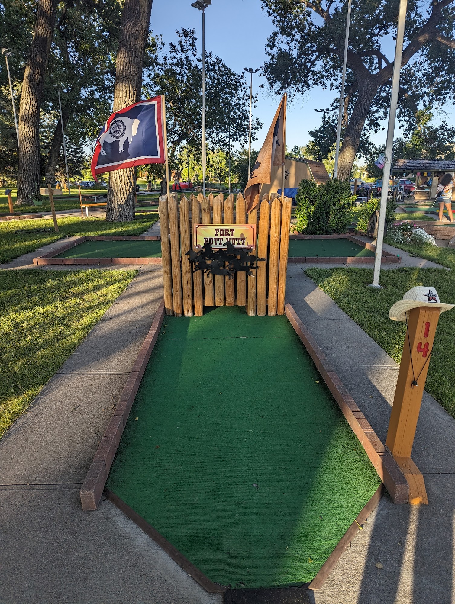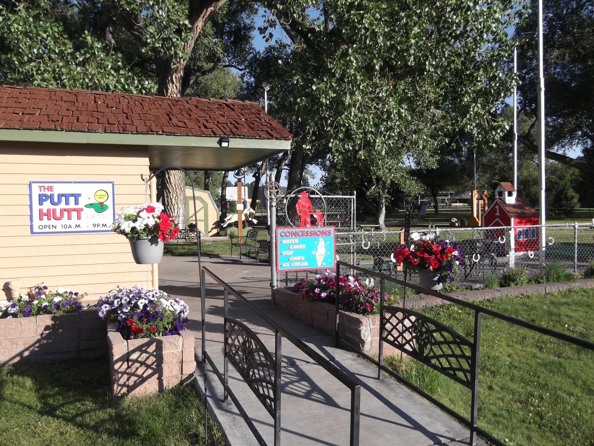 The Putt Hutt is a popular and well-maintained miniature golf course owned and operated by the city of Cheyenne. Located in Lions Park, it offers a fun experience for all ages, including families, children, and couples. Visitors enjoy the western-themed course, which is well cared for and features shaded areas with shade trees. The course is wheelchair accessible, with parts that turn like a gate to provide access for those using mobility devices. The staff, mostly teens during the summer, are friendly and helpful, often making guests feel welcome. The owner, who is often present, adds a friendly touch by greeting visitors with a smile, explaining the rules, and engaging in conversations. Kids and adults alike love the fun features, such as ringing a bell upon scoring a hole-in-one and the ability to ride a mechanical horse for free. The pricing is reasonable, making it a great spot for a casual outing or a date night. Over the years, the course has seen improvements in lawn and hole upkeep, though some guests hope for future renovations to modernize certain holes. Overall, The Putt Hutt provides a fun, family-friendly environment where visitors can enjoy friendly competition, prizes, and a western-themed setting, making it a favorite local spot for many years.