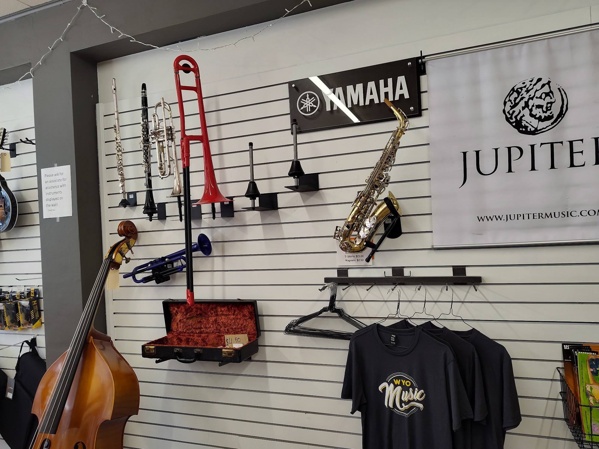 WYOmusic is a locally owned and operated musical instrument shop in Cheyenne, Wyoming. It offers rental, repair, and retail services. The store is described as a very nice little music store with all sorts of stuff for guitar and bass, including cables, adapters, and really cool music stands. Staff are knowledgeable, friendly, and super helpful, providing recommendations for lessons and going above and beyond for customers. They offer really good pricing on everything and are willing to order specific items, like a bass guitar, while also throwing in deals and extras. Customers report having a great time and highly recommend the shop, stating they will definitely return.