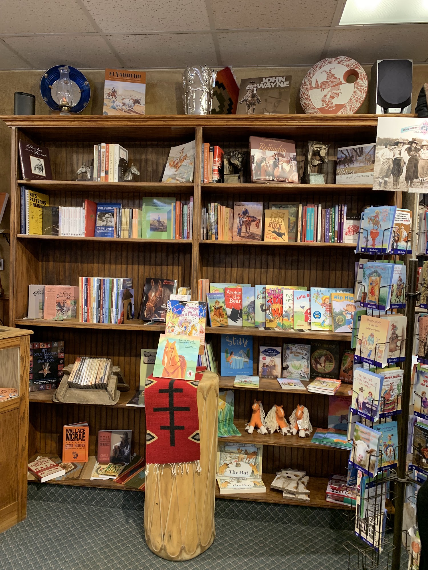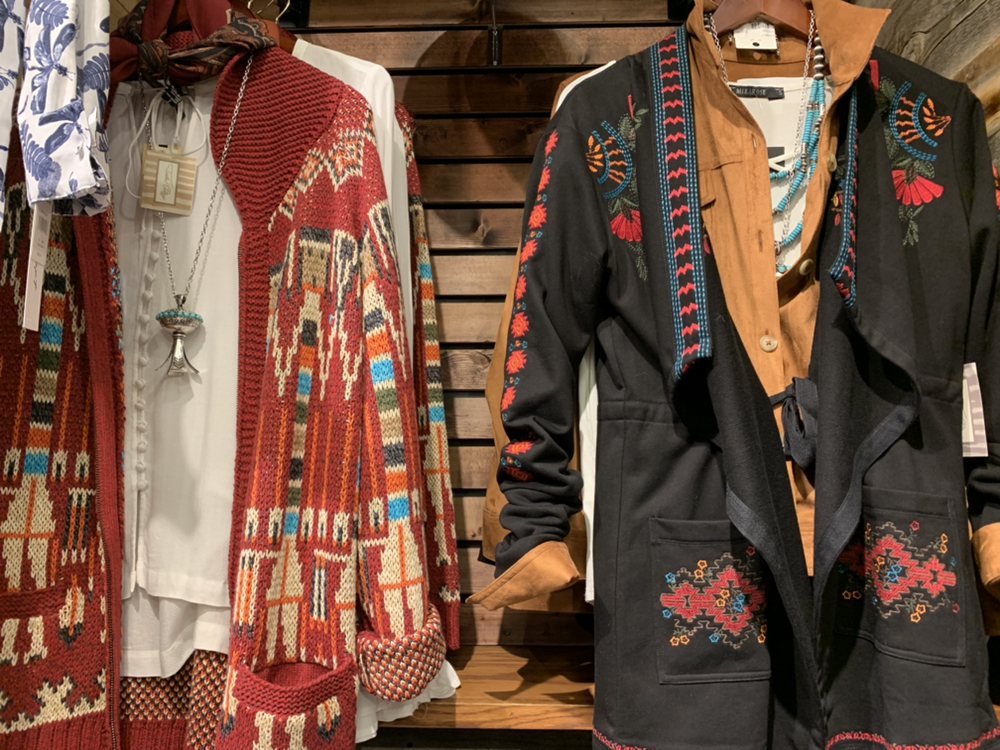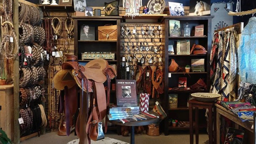 Very cool western shop. Sotable runners, barware, Navajo style rugs, pillows, placemats and tablerunners, books about cowboys and ranching lifestyle. Western clothing and some western horse tack. Only 4 stars cuz they don't have CDs and DVDs any longer. At least they didn't have them last time I stopped in.