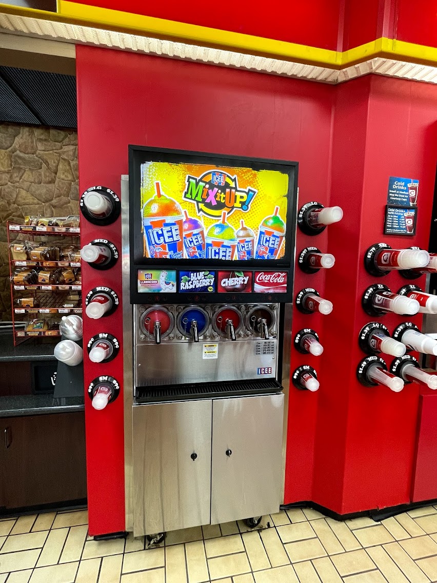 Easy in-out. Reg-Mid-Premium grades of Gasoline. Each pump has windshield cleaning station, hand sanitizer. Inside Common Cents had hot quick foods & cold drinks, snack items. Coffee Station was Great. Restroom was Ultra Clean. Very clean & organized. Spacious !