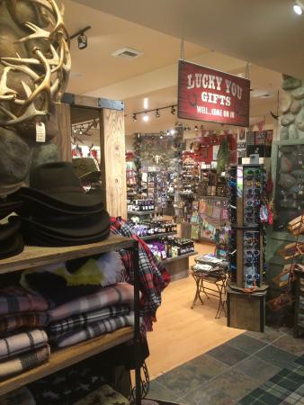 Lucky You is a shop attached to a t-shirt store, offering a mix of local unique products and items similar to other shops in the area. Visitors can find souvenirs like huckleberry scented candles, antlers, and stickers for kids. The store has a good selection of items perfect for bringing home for family and friends or as keepsakes. Located inside a building with multiple shops, it is worth finding for those looking for small souvenirs and local products.