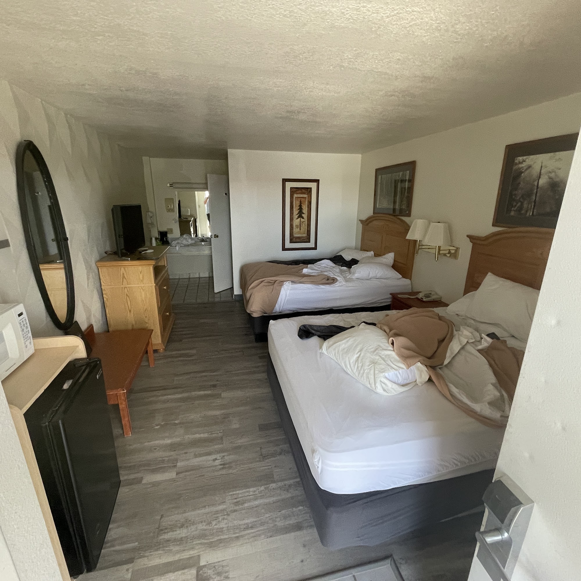 I would say this hotel has an interesting history. You can tell it once had a pool and a restaurant. There is a bar, which was nice to have. The people in the office were very friendly and helpful. Although this hotel was older, and a bit expensive, we are glad we stayed.