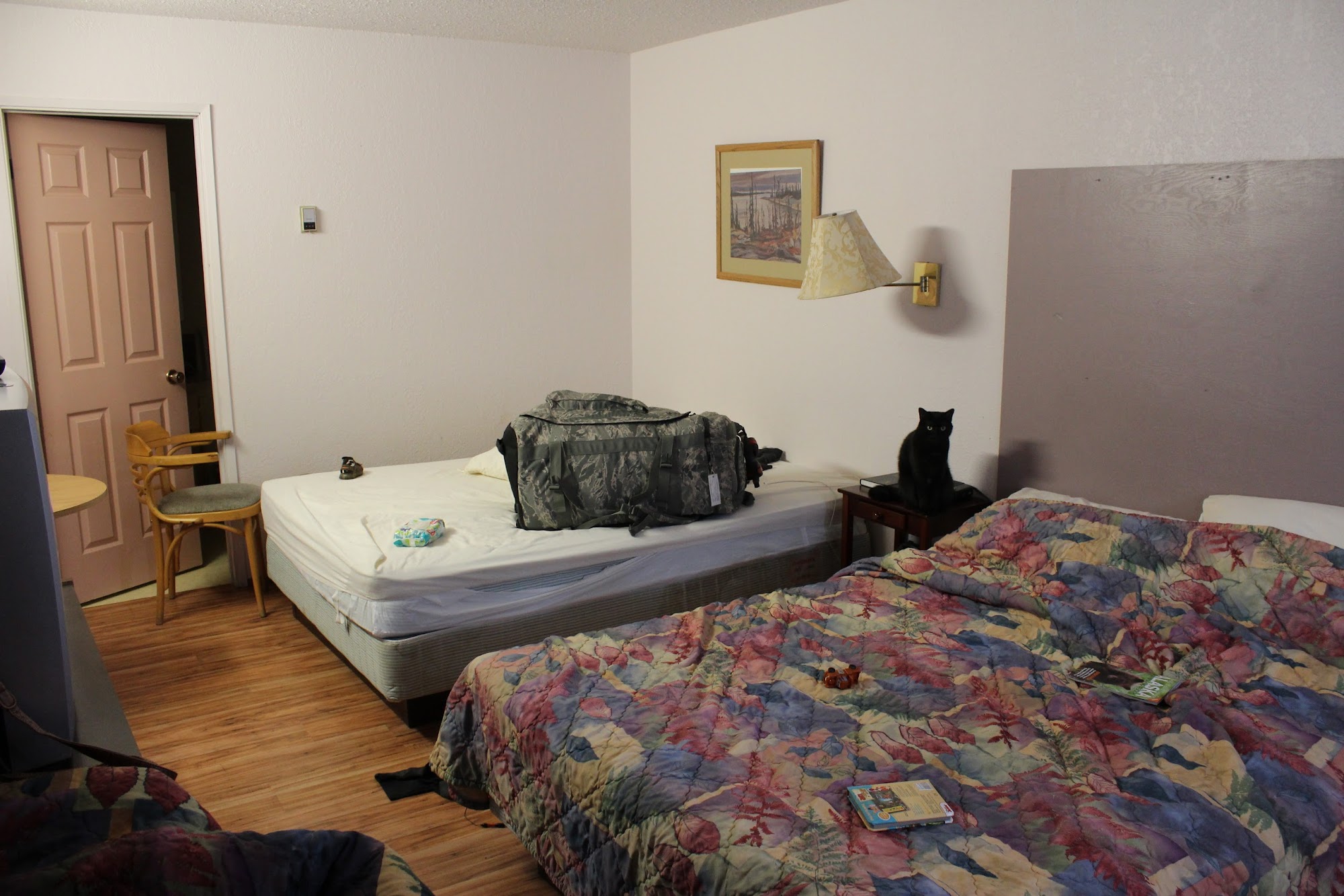 Quaint rooms, old fashioned double bed cabin rooms. Seems a quiet little corner of the hotel row, operated by Andrea’s up the road a bit. Honest run business and conveniently located for mid town Watson Lake.