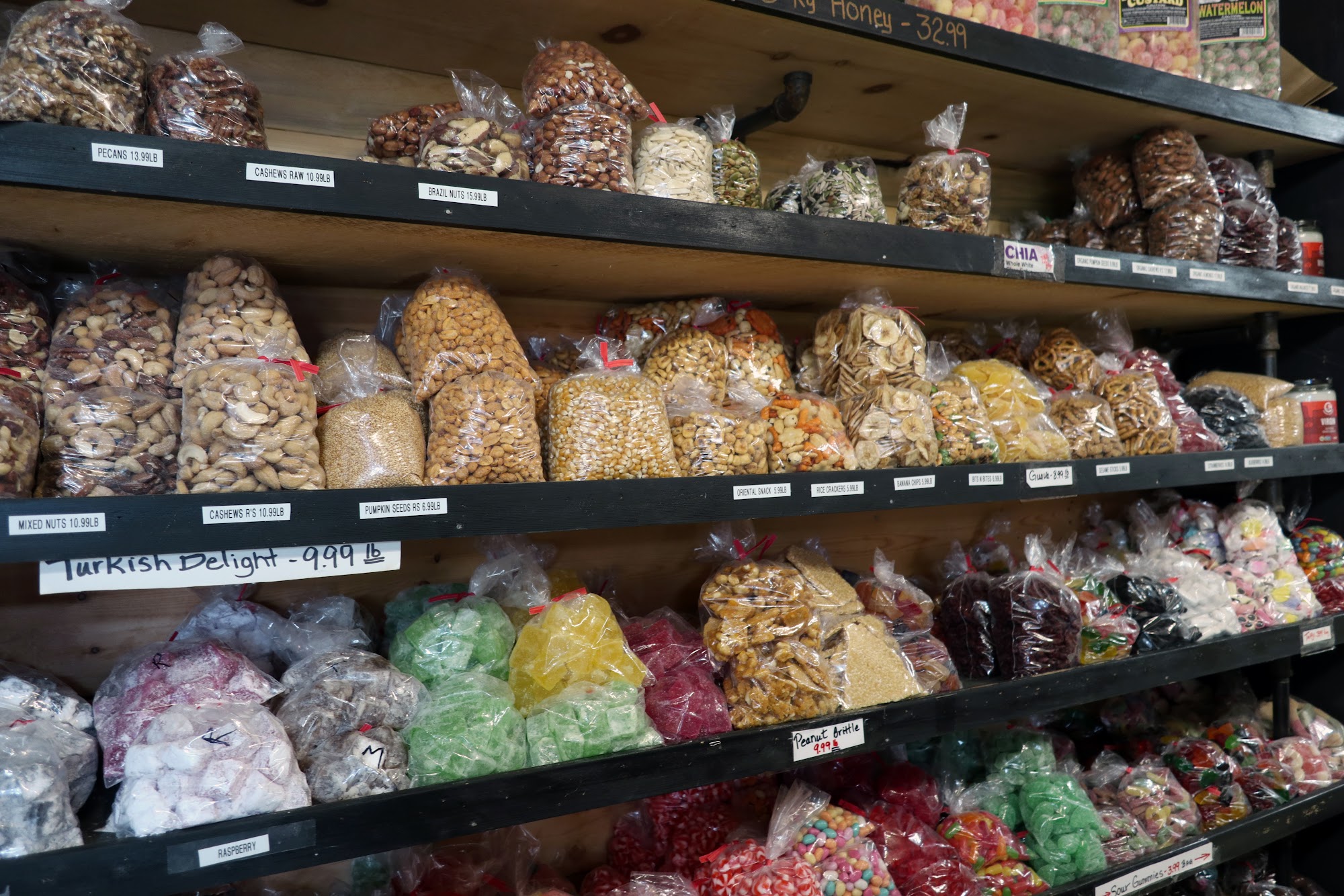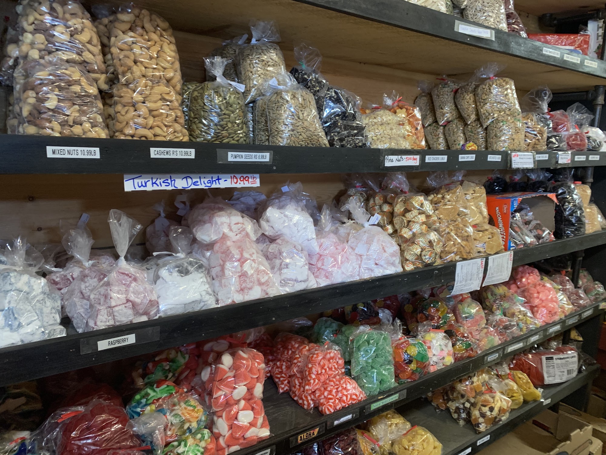 Vegetables and fruit are always fresh and other selections like dried fruit, candy and chips.